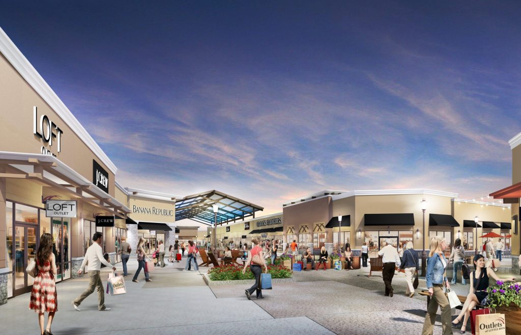 The Outlets is situated in Little Rock, Arkansas. Built for New England Development and designed by Allevato Architects, this ground-up, multi-building, open-air mall occupies a 30-acre site and boasts over 372,000 square feet of retail space. The mall was completed in October of 2015.